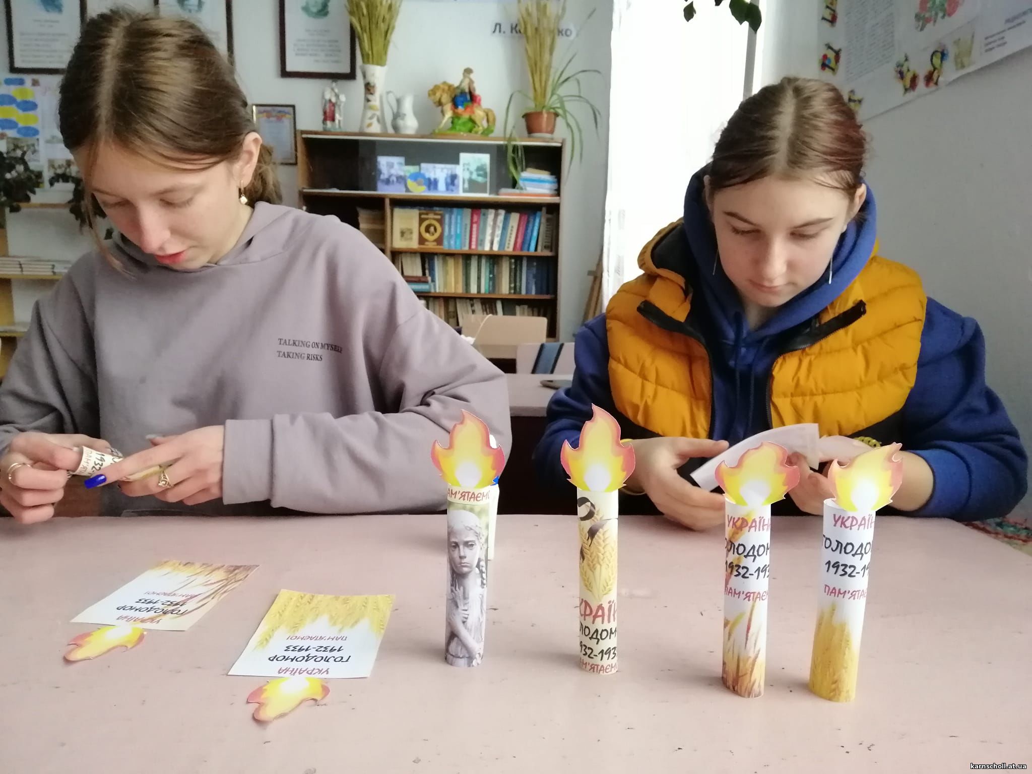 Наші учні виготовили незабудки, ангелики та свічки пам'яті до дня пам' яті жертв Голодоморів.